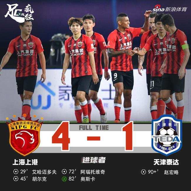 中超-四外援包揽进球颜骏凌扑点 上港4-1大胜泰达