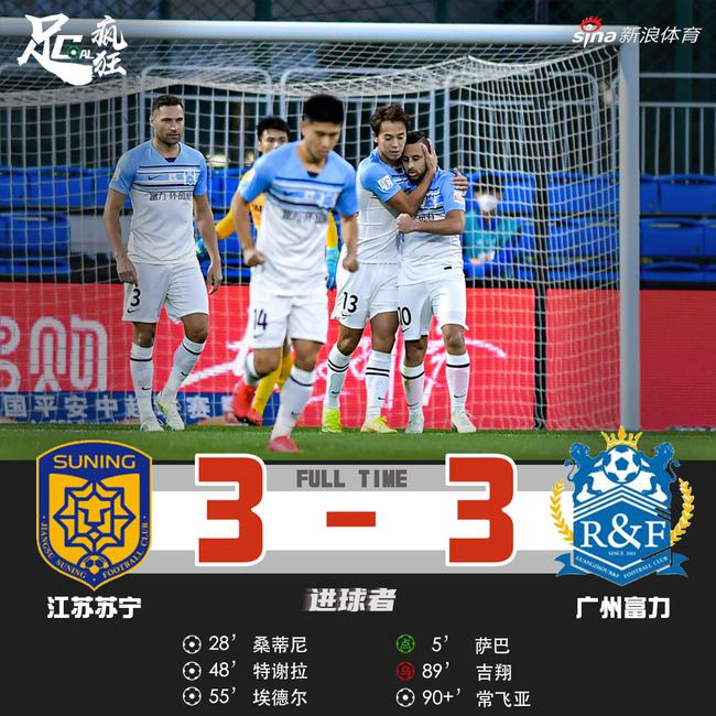 中超-特埃互演传射常飞亚补时献绝平 苏宁3-3富力