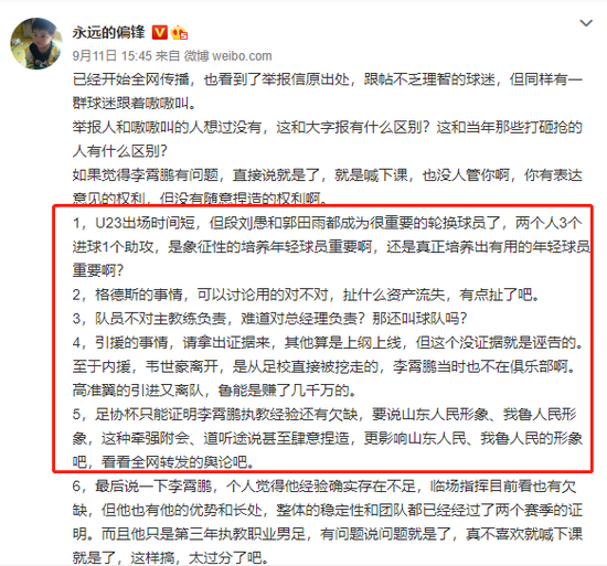 与其说这是对李霄鹏的不满,在某种程度上,也是对俱乐部引援的一些失望。