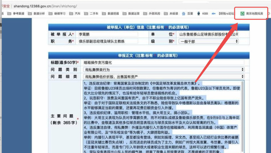 有细心的网友发现,该截图右上角的浏览器收藏夹一栏显示了“南京地图找房”图标,并根据图片上其他数据运营图标分析:这个“举报人”有可能并非真正的鲁能球迷,而是哗众取宠的恶意营销号。