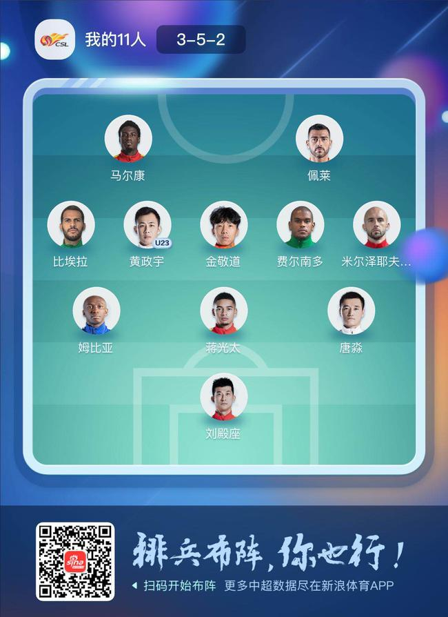 2020赛季中超联赛第一阶段第12轮赛事,国安大胜黄海青港,比埃拉的出色表现令国安攻击线更为恐怖,顶替奥古斯托的费尔南多也及时证明自己;鲁能在对佳兆业的比赛中找回赢球感觉,金敬道与佩莱起到突出作用;富力绝杀大连人,唐淼与黄政宇有醒目发挥。以下是新浪体育评选的中超第12轮最佳阵容(3-5-2)——