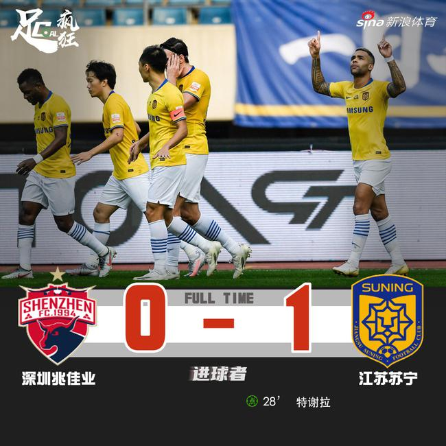 北京时间9月27日,中超第一阶段收官战,深圳佳兆业对阵江苏苏宁。上半场比赛普拉利甘吉禁区对李昂犯规送点,特谢拉命中点球;下半场杨博宇直接染红被罚下,普拉利甘吉中柱,最终苏宁1-0战胜深足,锁定小组第二排名,深足则无缘进入争冠组。