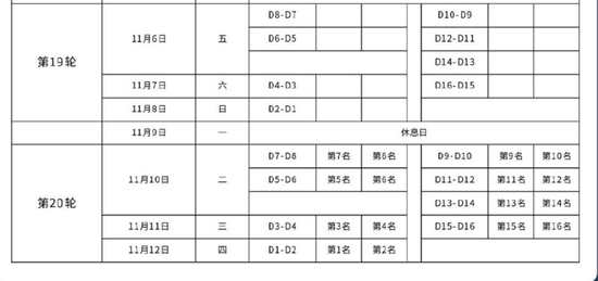 8进4的比赛结束后将休息一天,从10月26日开始进行半决赛的比赛,半决赛两场踢完后休息三天,然后展开决赛两回合的争夺,11月12日产生最终的冠军。保级的球队有类似的安排。