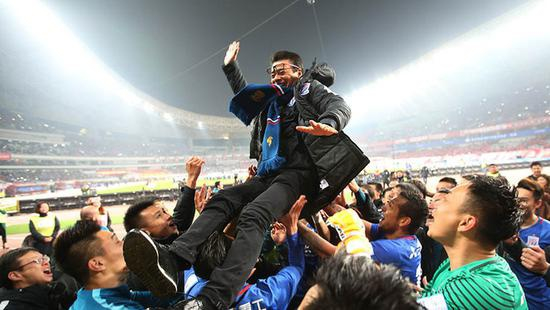 图说:上海上港队获得2018赛季中超冠军、2019年超级杯冠军。
