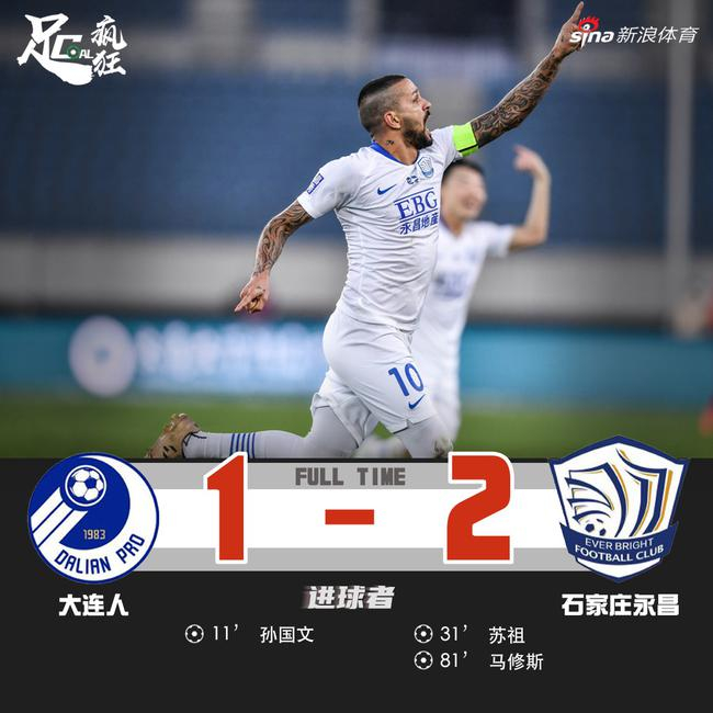 北京时间10月17日15:30,2020赛季中超联赛保级组第1轮首回合比赛继续进行,大连人与石家庄永昌展开激烈争夺。上半场比赛孙国文禁区内单刀冷静推射远角帮助大连人取得领先。朴世豪任意球助攻苏祖头球帮助石家庄扳平比分。下半场第80分钟,马修斯远射破网石家庄永昌实现反超。90分钟战罢,大连人1-2不敌石家庄永昌,石家庄永昌在两回合较量中先声夺人抢得先机。
