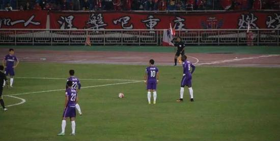 由于看台上的声势巨大,以及球员横幅被撕动静也颇为响烈,场上的不少力帆球员都已经看到甚至不住地观望9~12区发生的事变。