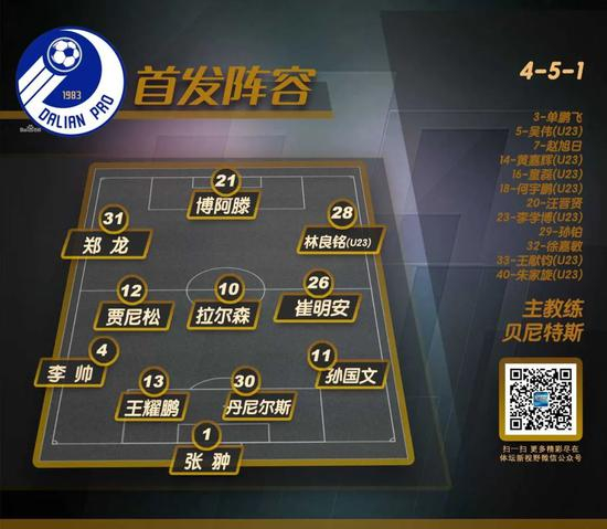 “主场” 作战的大连人尽遣主力出场,博阿滕顶替回国备战世预赛的龙东首发,出任单箭头。