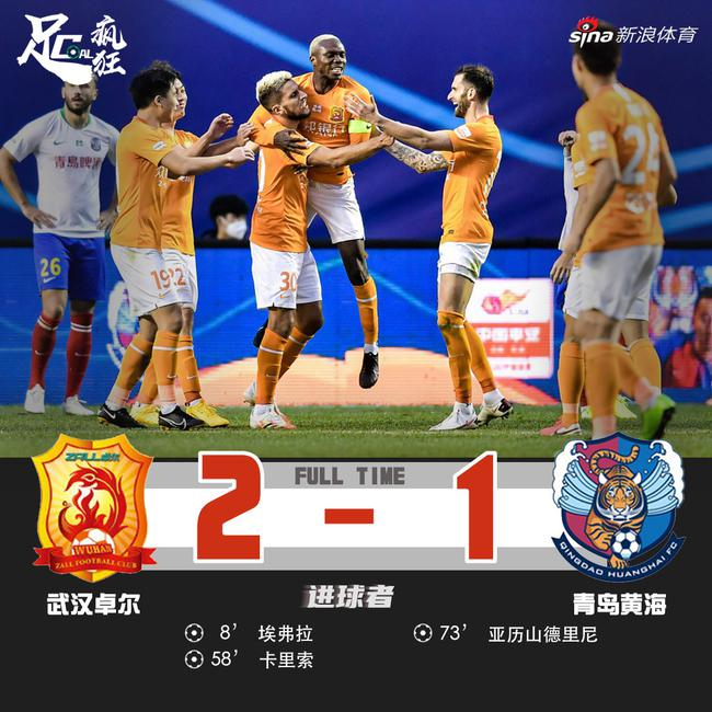 北京时间15点30分,2020赛季中超联赛第17轮的较量上演,武汉卓尔对阵青岛黄海青港。上半时埃弗拉连过两人后兜射破门,纳霍尔伤退。下半场卡里索头球破门,高翔红牌被罚下场,亚历山德里尼任意球直接破门扳回一分,卓尔2-1战胜黄海。