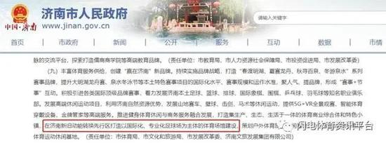 其实早在今年5月份,济南市发布的文件中明确提出:“在济南新旧动能转换先行区打造以国际化、专业化足球场为主体的体育场馆建设。”