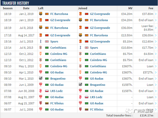 这约合1.2亿的转会费中大部分产生在广州恒大和巴塞罗那之间的交易,这总价1.269亿的转会身价也让他成为当今足坛最贵的中前卫球员,力压阿根廷名宿贝隆(1.196亿)、曼联中场博格巴(1.05亿)等一众世界级球星。