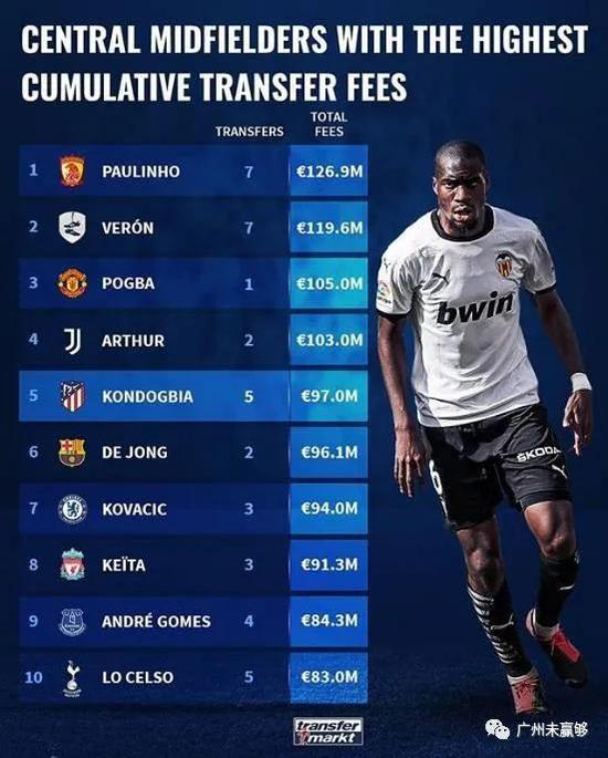 1.26亿欧!暴力鸟压博格巴 成累计转会最贵中前卫