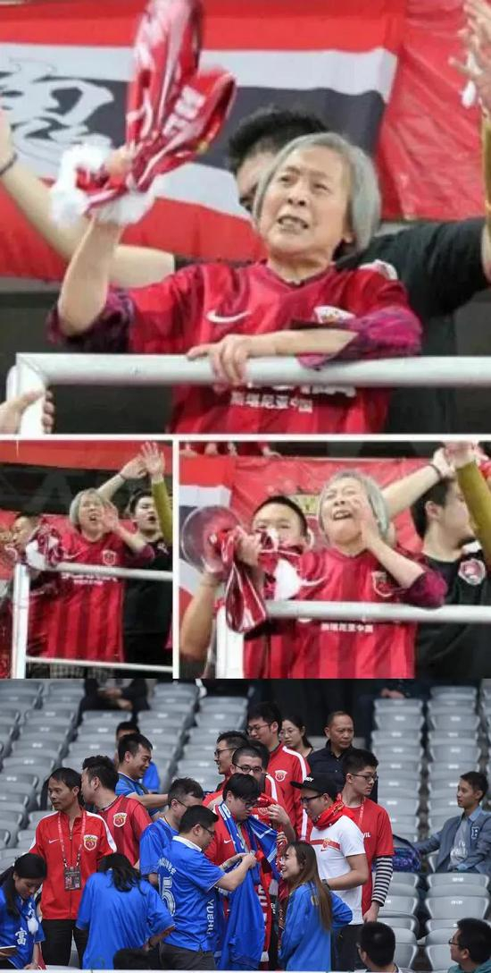 从过往新闻观摩,上港球迷这个群体,曾出现过瞒着家人、用退休工资给球队和球迷会捐款的“施妈妈”(2015年因脑溢血逝世),也曾出现过2016赛季主场对阵广州富力比赛中与富力远征军互换球衣、高喊“富力加油”的中外看台少有场景。