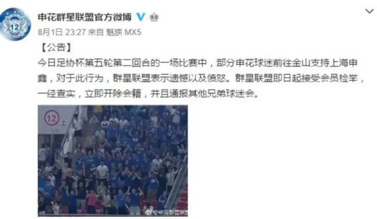 然而这样的举动很快得到了申花部分球迷组织的严肃回应: