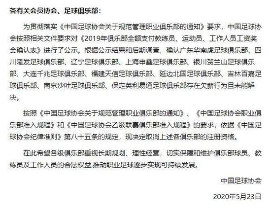今年上半年,中国足球职业联赛经历了一波俱乐部退出潮。图片来源:中国足协官网截图