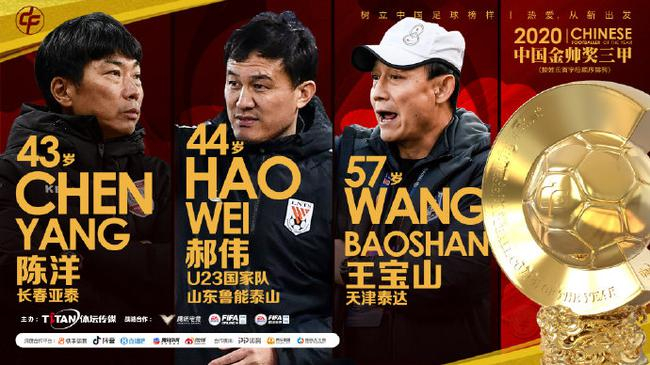 2020中国金帅奖三甲:陈洋(长春亚泰)、郝伟(U23国家队/山东鲁能泰山)、王宝山(天津泰达)