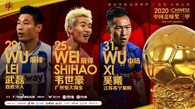 2020中国金球奖三甲:武磊(西班牙人)、韦世豪(广州恒大淘宝)、吴曦(江苏)