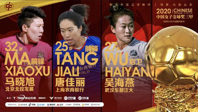 2020中国女子金球奖和五人制金球奖由专家评委投票选出,马晓旭、唐佳丽和吴海燕的得票进入女子金球奖前三,三届中国女子金球奖得主王霜名列第4,江苏女足队长马君排名第5。五人制金球奖的最终得主将在丁顺杰、徐洋和沈思明三人中产生,其中徐洋和沈思明是曾经的中国五人制金球奖得主。