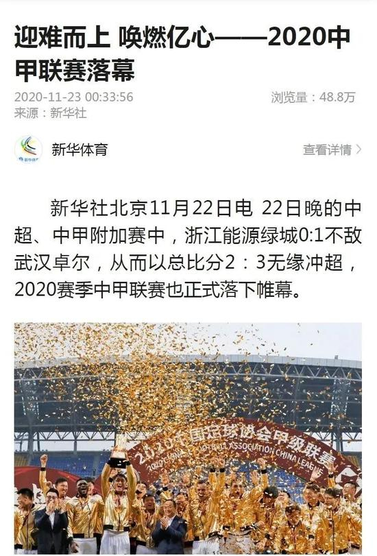 新华社在关于中甲联赛的总结文章《迎难而上 唤燃亿心——2020中甲联赛落幕》中,专门提到成都赛区的工作组织和现场氛围,对成都赛区各项工作及“狂而不乱”成都球迷给予了充分的肯定与高度的赞扬。