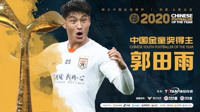 2020中国金童奖授予年度表现最佳的U21球员,他们也是杭州亚运会和U23亚洲杯的适龄球员。郭田雨、韩佳奇和温家宝等人在过去一年中的表现有目共睹,最终山东鲁能泰山前锋郭田雨脱颖而出,获取中国金童奖的荣誉,他的得分是475分。广州富力门将韩佳奇和上海绿地申花边卫温家宝分别以339分和268分的成绩位列2020中国金童奖评选的第二和第三位。正在集训的三人在海口接受了中国金童奖的奖杯和证书,为他们颁奖的是U22国家队主帅扬科维奇和领队杨晨。