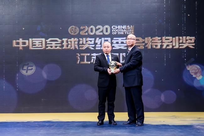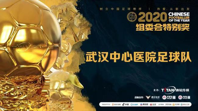 为了纪念2020这特殊的一年,中国金球奖组委会颁发了两个组委会特别奖,分别授予了武汉中心医院足球队和江苏赛区,向战斗在抗疫一线的热爱足球的医护人员以及为中国足球全面复赛做出卓越贡献的团队致敬。