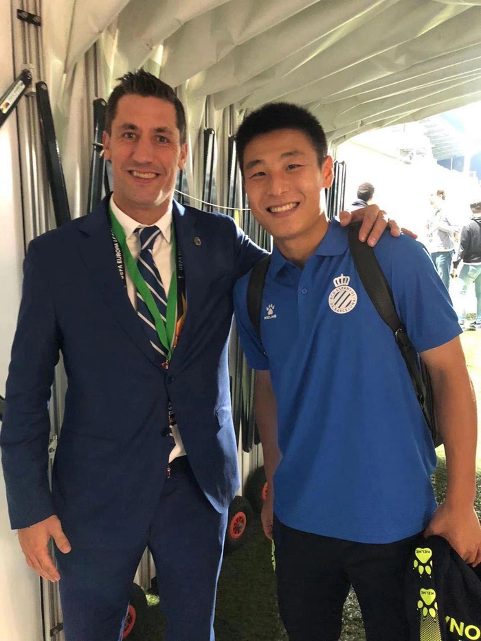 卡普应该是上个赛季开始后不久来到俱乐部管理层的,长相英俊的他主要负责对外的公共关系。面对这样的传奇人物,我记得第一次见面的时候居然是他主动和我打招呼,我们还一起合了影,一下子让我感觉世界冠军那么亲和。现在几乎每次客场他都会和我们同行,慢慢地接触久了,给我的感觉是他的思维非常活跃,非常地幽默和善于表达自己,他总开玩笑说皇马巴萨的球员和他一起踢球是他们的荣幸,还说和我合影之后他ins的粉丝能涨几十万。