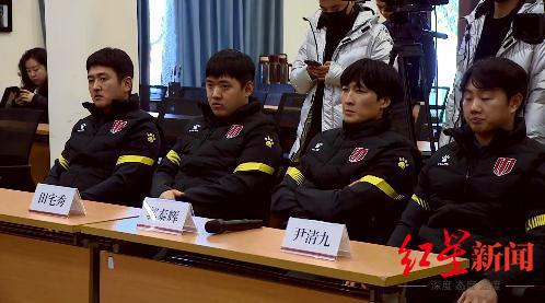 见面会开始前,身穿成都蓉城训练外套的徐正源带领首席助理教练金大仪及翻译提前在主席台落座,而其他几名助理教练、队医也出现在见面会现场,不过他们坐在了台下。刚刚结束隔离的徐正源气色不错,在现场也显得神态轻松,在线上见面会正式开始前还不时与身旁的金大仪和翻译用韩语聊上几句。