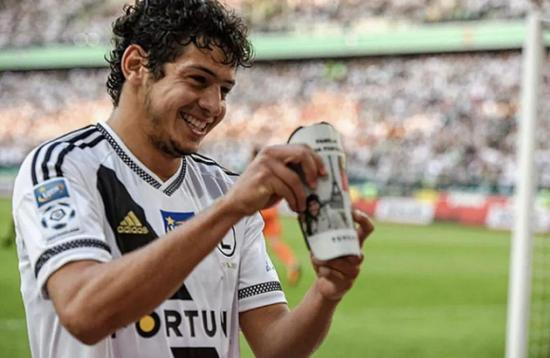 经典的“L”字(华沙莱吉亚Legia首字母)进球庆祝姿势献给华沙球迷
