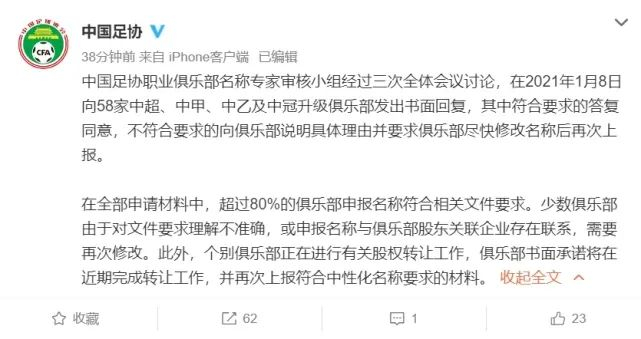 换而言之,足协下发通知的本意、出发点没错,希望国内的职业俱乐部能使用“中性名”,以便为下一步的发展与商业开发奠定基础,让俱乐部留存的时间可以更长。但因为混淆了“俱乐部”与“俱乐部公司”的概念,甚至从中国足球职业化起步阶段就没有严格区分两者之间的关系与定位,导致的结果其实是变成了“俱乐部公司”名称的“中性化”,这当然也很容易引起企业与公司的强烈不满。
