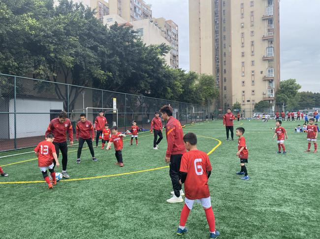 走进成都棠湖外国语学校,能够感受到扑面而来的运动气息,一块带看台的11人制标准足球场,一块9人制足球训练场和一块5人制足球场,还有一个造价不菲的风雨运动场。在训练场上,北体大队的球员们在与小球员游戏、比赛的同时,耐心细致地给予他们以基本指导和演示,受到了小球员们和家长的欢迎。