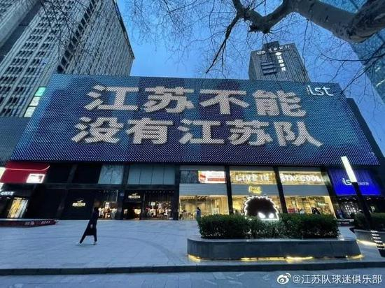 对于一些游走在生死边缘的球队和他们的球迷来说,准入名单的推迟宣布就意味着还有“可能”。今天,上赛季中超冠军江苏队的球迷就包下了南京市某购物中心外侧的大屏幕,投放了标语 “江苏不能没有江苏队”。