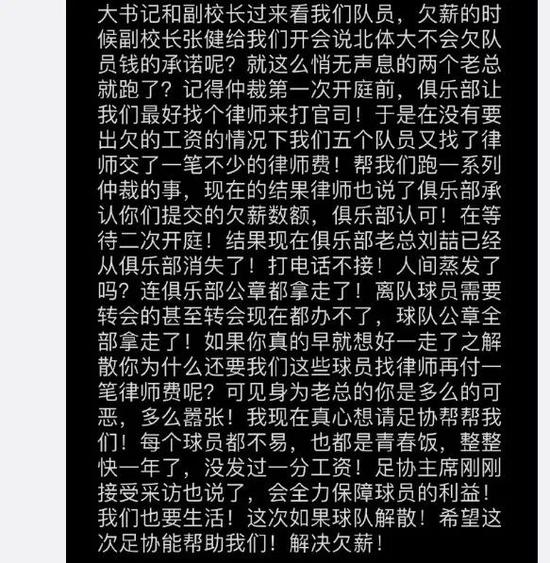 4、球员祝一帆称南通支云俱乐部拒不支付欠薪。