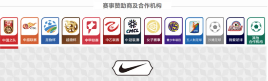2009年,耐克公司正式成为中超联赛的官方战略合作伙伴,从2011年起更是包揽了中超16队的全部球衣装备。包括国家队之内,耐克一直是中国足球的主要赞助商。