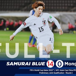 北京时间3月30日晚,2022年卡塔尔世界杯亚洲区40强赛F组日本和蒙古的比赛,在千叶富田电子竞技体育场开赛。第12分钟南野拓实接右路松原健送球,左脚巧射首开纪录,接着大迫勇也、镰田大地、守田英正各入一球。蒙古乌龙贡献一球。半场日本队5比0领先。下半场浅野拓磨进一球,稻垣祥、大迫勇也、伊东纯也和古桥亨梧四人梅开二度,大迫勇也全场帽子戏法。最终日本队14比0大胜蒙古队,平了伊朗14比0胜柬埔寨的2022年世预赛亚洲区最高分差。离队史最高纪录15比0(1967年对阵菲律宾队)只差一球。