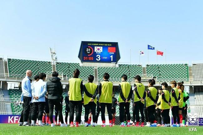 4月8日15时,中国女足将迎来客场对阵韩国女足的奥预赛附加赛首回合比赛,两队将争夺仅有的一张东京奥运门票。而在赛前韩国女足备战训练时,高阳体育场正在调试设备,LED大屏竟已显示“韩国3-1中国”比分。