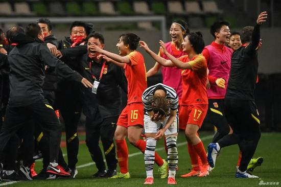 终场哨响了,几乎每个在场上的女足队员都哭了出来。