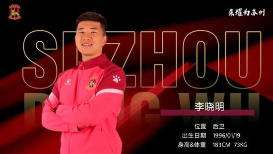 李晓明,1996年1月19日出生;籍贯江苏;身高183cm;体重73kg;司职后卫。多次入选国少、国青,并担任国青队长。2020赛季中期曾租借加盟苏州东吴足球俱乐部。