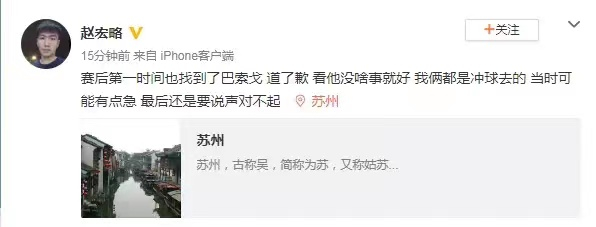 赵宏略赛后道歉