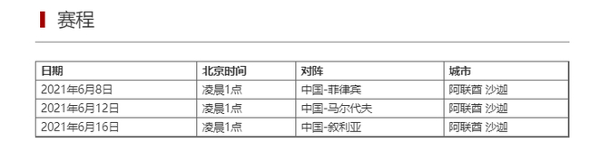 据最新消息,国足40强赛A组剩余所有比赛都将在当地时间晚上9点进行,即北京时间6月8日凌晨1点对阵菲律宾;6月12日凌晨1点迎战马尔代夫;6月16日凌晨1点对阵叙利亚。
