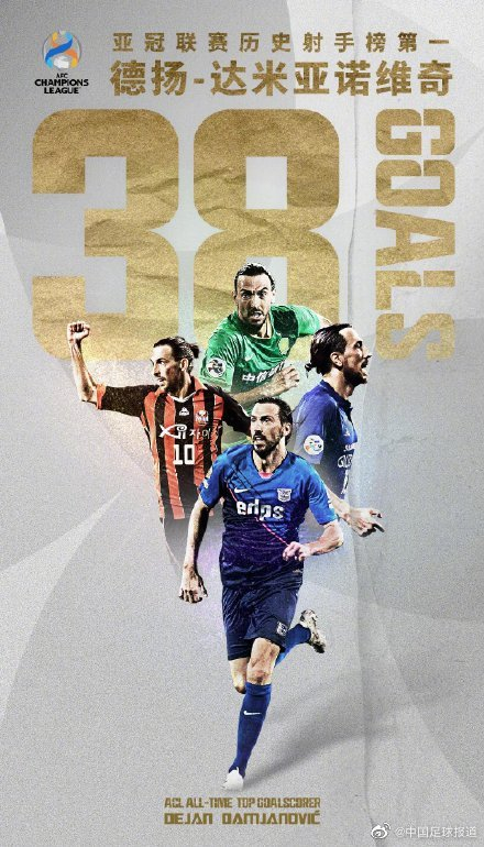 在香港杰志对阵大阪樱花的比赛中,德扬打进了他在#亚冠联赛# 的第38粒进球,就此超越了李同国,成为亚冠联赛历史第一射手!