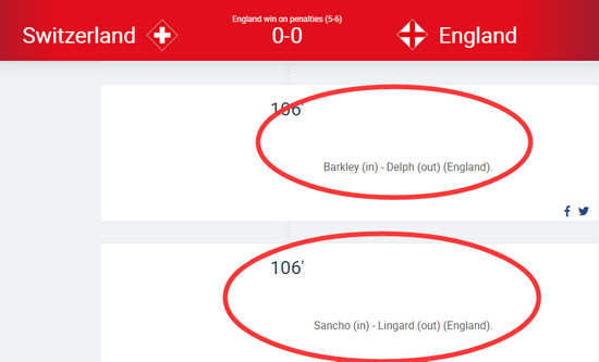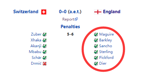 当时,索斯盖特在加时赛下半时换上了巴克利与桑乔,在120分钟与瑞士队战成了0比0之后,在马奎尔第一个主罚点球命中之后,巴克利、桑乔第二、第三个出场,全部都命中。最终,英格兰队以6比5击败了瑞士队,获得第三名。这一次,索斯盖特想法很好,希望复制成功,但谁也没有想到拉什福德、桑乔会连续罚丢,而更年轻的萨卡显然难以承受如此大的心理压力,最终将冠军拱手相让!