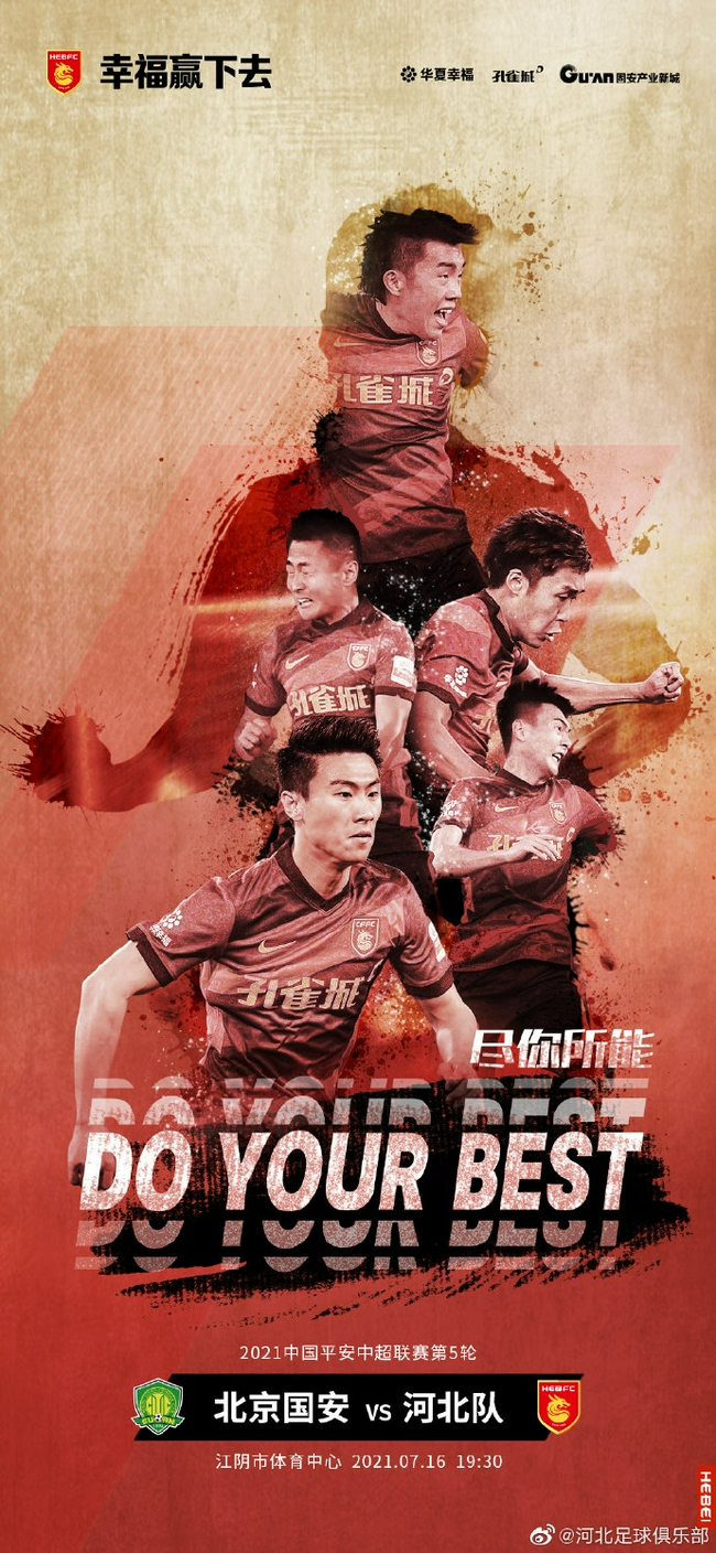 北京时间7月16日,2021赛季中超联赛重燃战火。北京国安将与河北队进行第5轮补赛。赛前,双方公布了本场比赛首发阵容及替补。