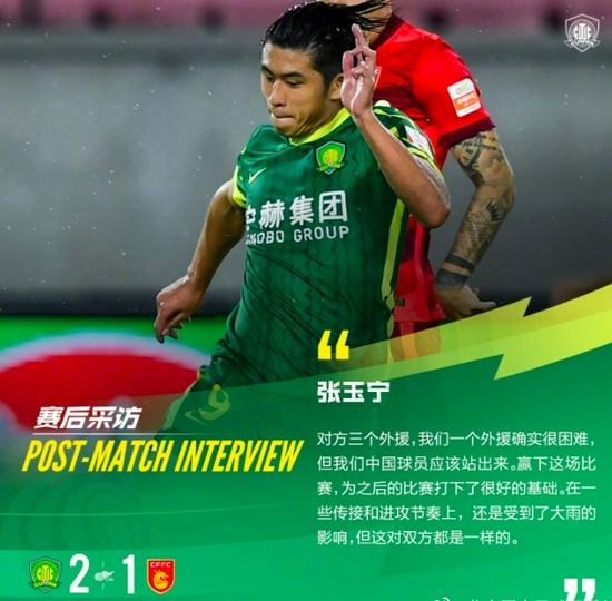 主帅比利奇在复盘时表示:“对手的组织性很好,防线很严密,但我们打进第一个球后,比赛就变成对攻战。在这种情况下,我们就可以穿透他们防线了,并创造出了更多机会。”只是2比0领先后,国安队有些放松,被塞尔纳斯禁区前打出世界波,将比分扳为2比1。