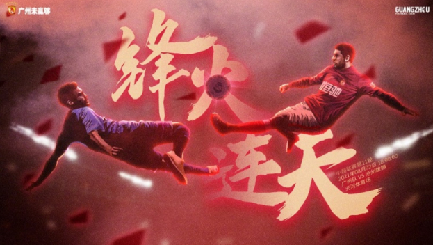 中超第11轮,广州队对阵沧州雄狮,赛前广州队发布了赛前海报,主题:“锋”火连天。