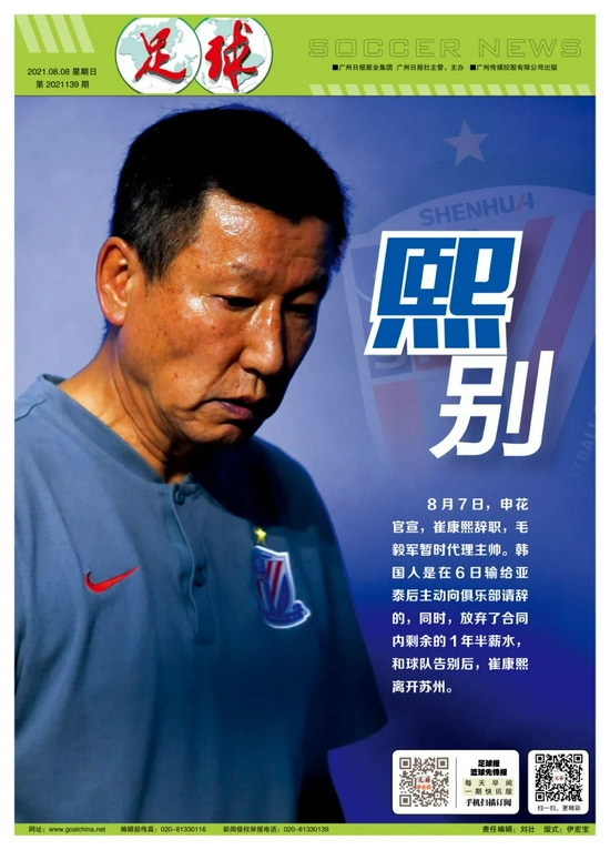 记者陈伟报道 1比2被亚泰逆转,成了压死崔康熙的最后一根稻草,那场比赛后,韩国老帅向俱乐部请辞,8月7日,申花官宣,崔康熙离任,领队毛毅军暂时指挥比赛。