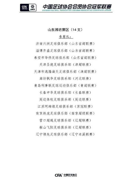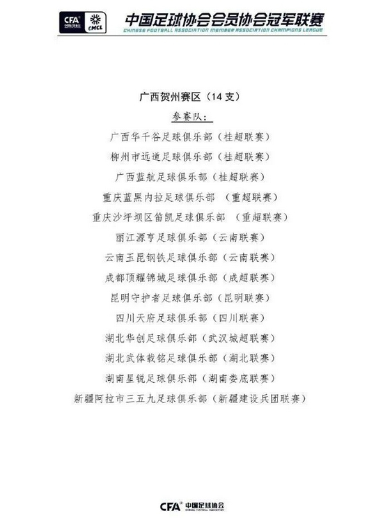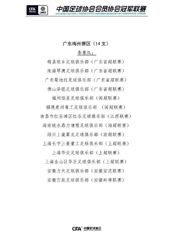 8月23日,中国足协下发2021中冠联赛大区赛竞赛通知,按照《2021中国足球协会会员协会冠军联赛规程》的文件要求,各相关会员协会已完成参赛俱乐部报名。