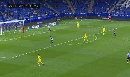 第19分钟,西班牙人球员一脚过顶长传穿透防守,德托马斯精彩停球获得单刀机会,但转身射门已经失去了角度,被对手门将封堵。