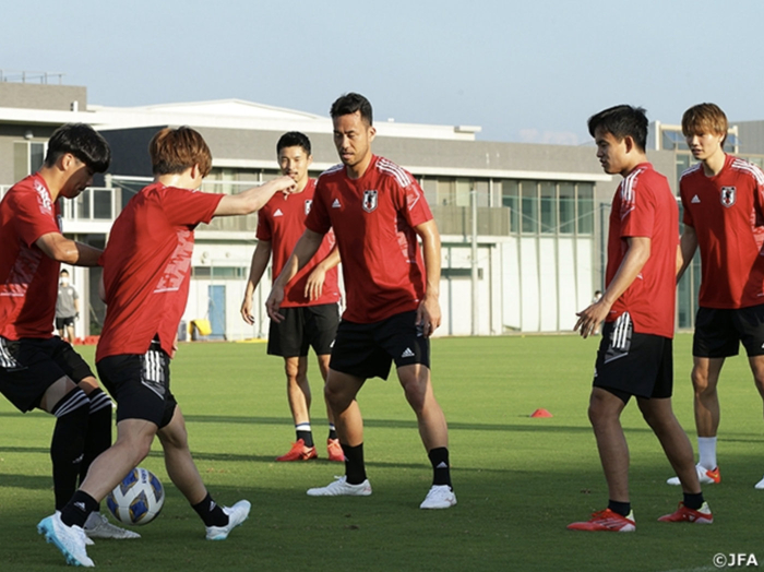 由于大部分球员都在欧洲效力,森保一直到8月30日才在大阪组织了第一堂训练课,根据各个球员不同的体能和恢复情况,他将球员分为两组,设置了不同的内容,当天的训练,只持续了一个多小时就结束了。8月31日,吉田麻也和古桥亨梧等四名球员归队。9月1日,日本队进行了首次非公开训练课,正式进入备战阿曼队的节奏。