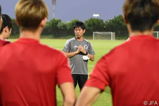 由于防疫原因,日本全队只能在酒店内完成恢复工作,直到北京时间9月4日晚,球队才在多哈完成首次训练。在首堂训练课上,日本队在前30分钟完成了简单热身和触球训练,随后森保一安排8名对阵阿曼出场的主力球员,去做恢复为主的低强度训练,其余球员则是分成两组,开始攻防演练,重点适应多哈炎热的天气环境。日本媒体特别提到,在首日训练结束后,每名球员衣服都已完全湿透。