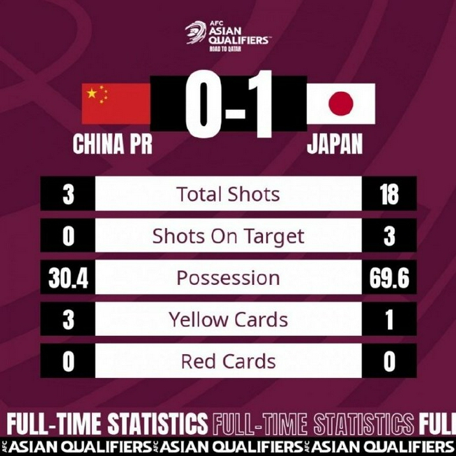 本场补时4分钟,权田修一最后时刻手臂扑救受伤,多少拖了点时间,最终中国队0比1小负日本队。