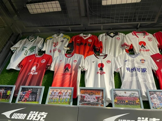 来到两兄弟当年创办的位于海珠区怡海路的广州锐克体育公司总部,在弟弟赵达新的引领下参观了锐克体育产品各个展示区,还有许多珍贵的照片、藏品及奖项,让人大饱眼福。众所周知,这个已经在广州体育迷心中扎根的本土品牌,如今在足球装备的打造上愈发专业:为澳超劲旅阿德莱德联队提供全套比赛训练装备,一度被传为佳话;而为中甲劲旅梅州客家队提供全套装备,更是在圈内备受认可。除此外,他们亦开始进入其他体育竞技领域的产品研发,发展态势自然也是越来越好。